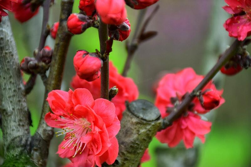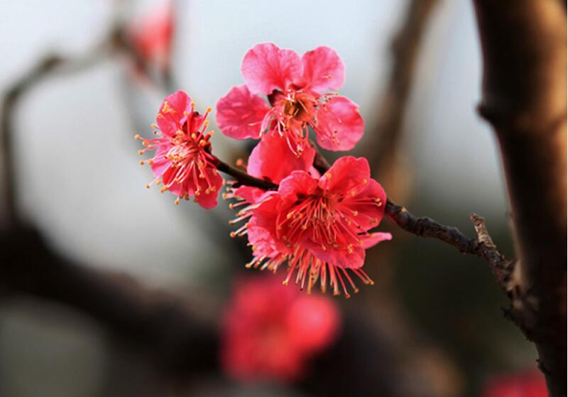 紅色臘梅是落葉小喬木,它的樹形并不高大,枝條呈現出彎曲錯落狀態,帶給人不一樣的美感刺激,在每年三月份左右,美人梅就開始開花,這時候的陽光照射可以讓它的開花效果更好,花朵會持續到四月份左右,開花以后就會慢慢長出嫩紅色的葉子。
