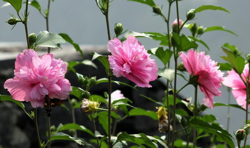 木槿的品種比較多,開花的顏色也比較多。常見的有重瓣紅花木槿、重瓣紫花木槿、牡丹木槿、白花重瓣木槿、長苞木槿等。